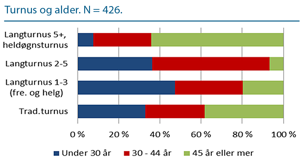 | Aldersgrupper fordelt etter ulike typer turnus. (klikk for full størrelse) |